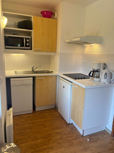 Côté cuisine laissez-vous inspirer avec sa plaque vitrocéramique, four à micro-ondes, cafetière à filtre, bouilloire, grille-pain, lave-vaisselle et tout le nécessaire de vaisselle.