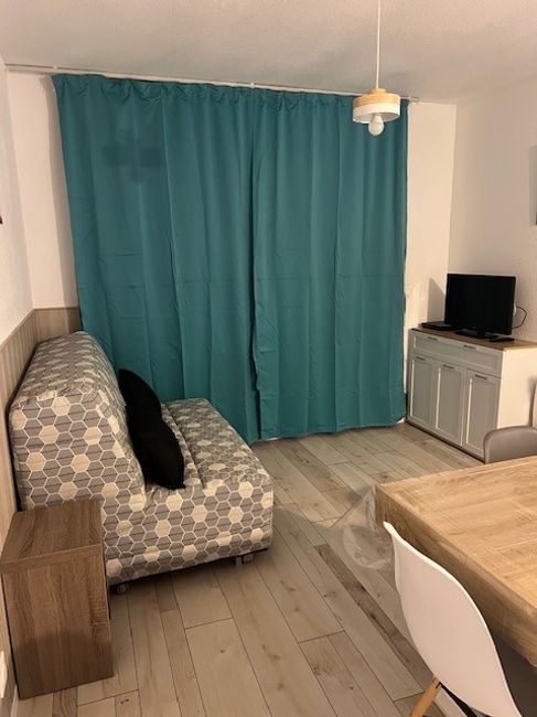 Pièce à vivre: canapé convertible avec couchage (140x188), télévision et wifi.