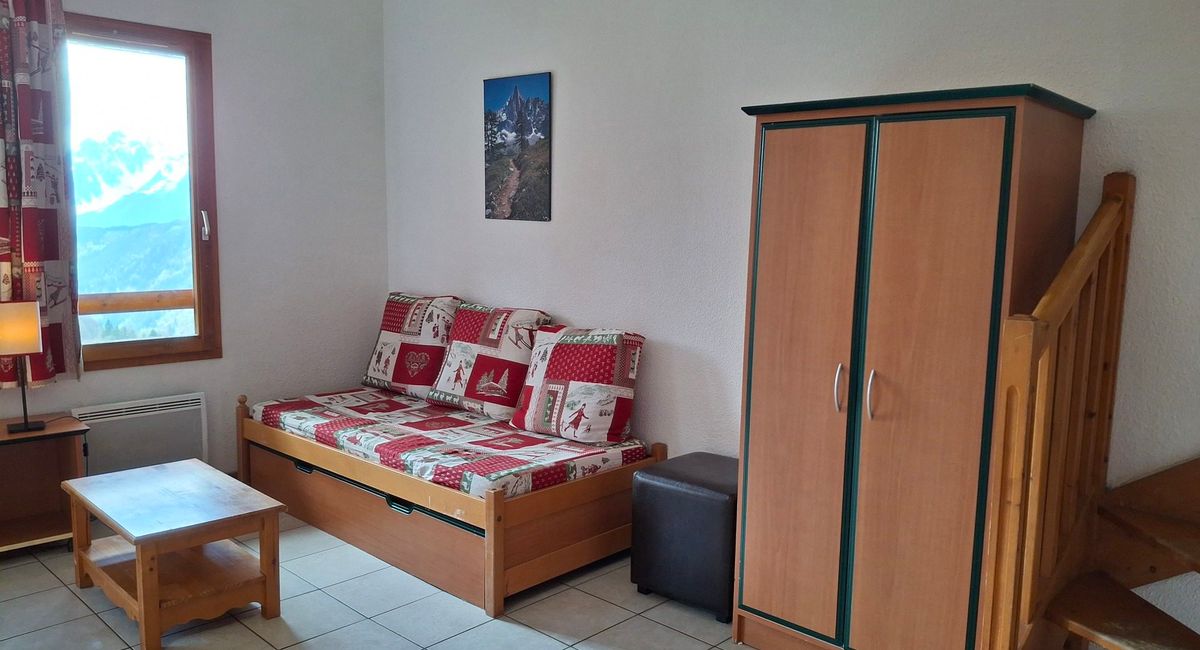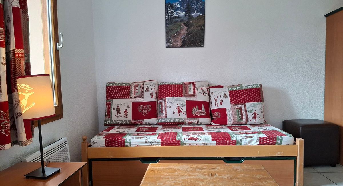 Pour votre confort, cet appartement est équipé d'un canapé gigogne, ainsi qu'une télévision écran plat et un accès au balcon avec une magnifique vue sud sur la vallée.